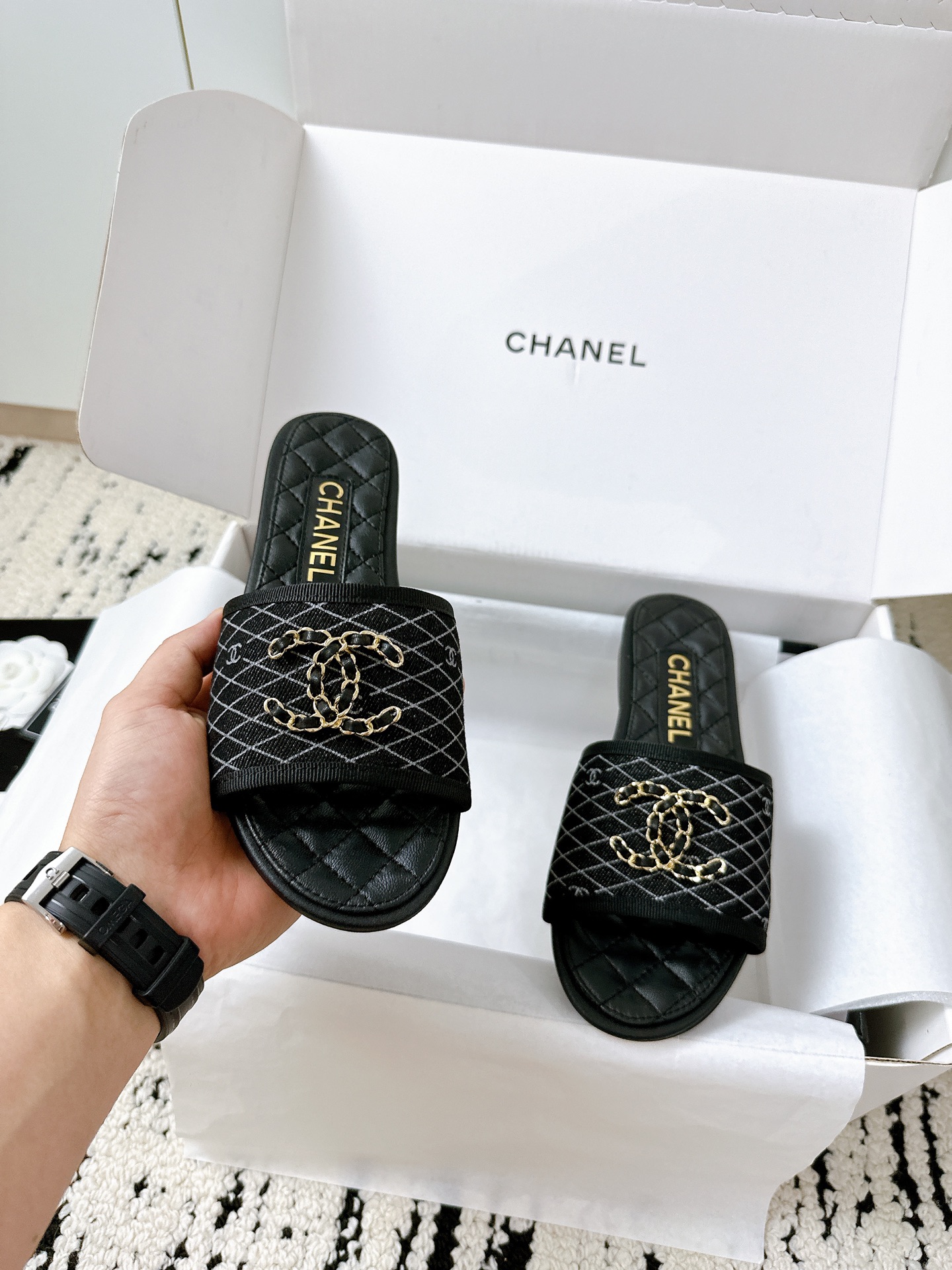 Chanel Woman Flip Flops Black
