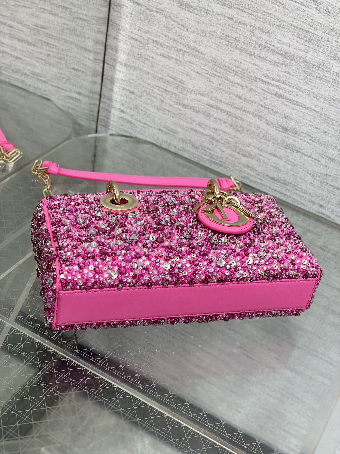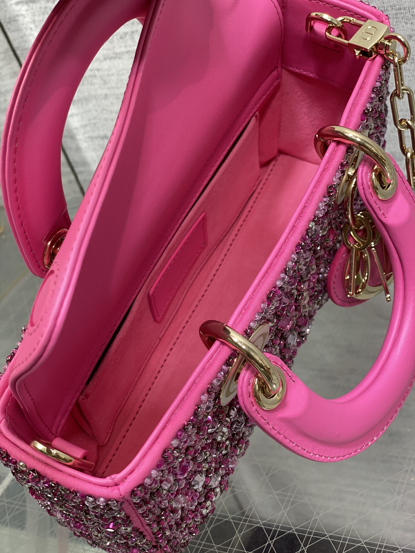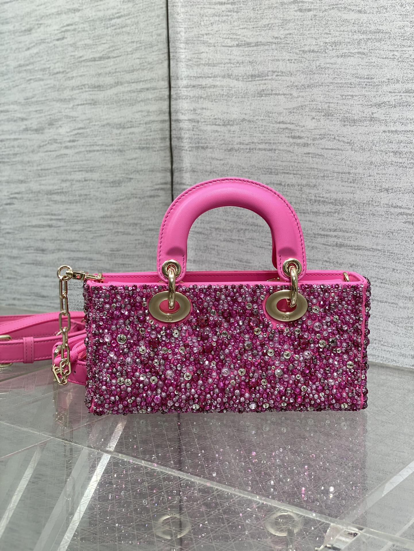 Dior- Lady D-Joy Bag-Limited Edition Heavy Beads-Rose red