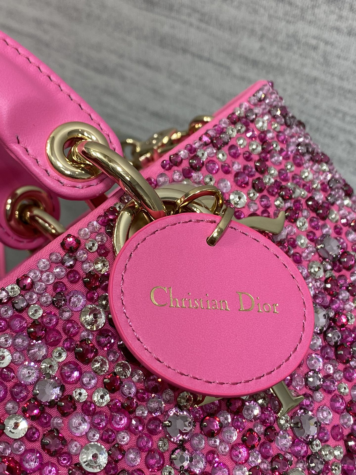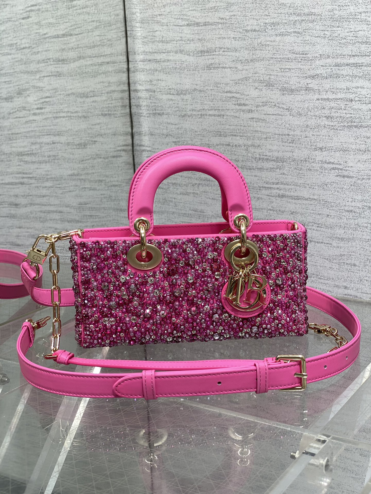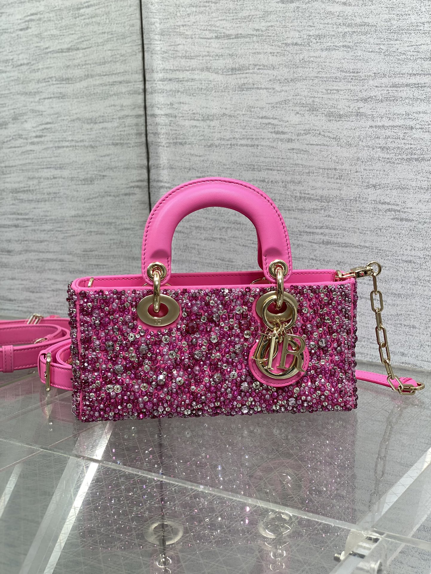 Dior- Lady D-Joy Bag-Limited Edition Heavy Beads-Rose red
