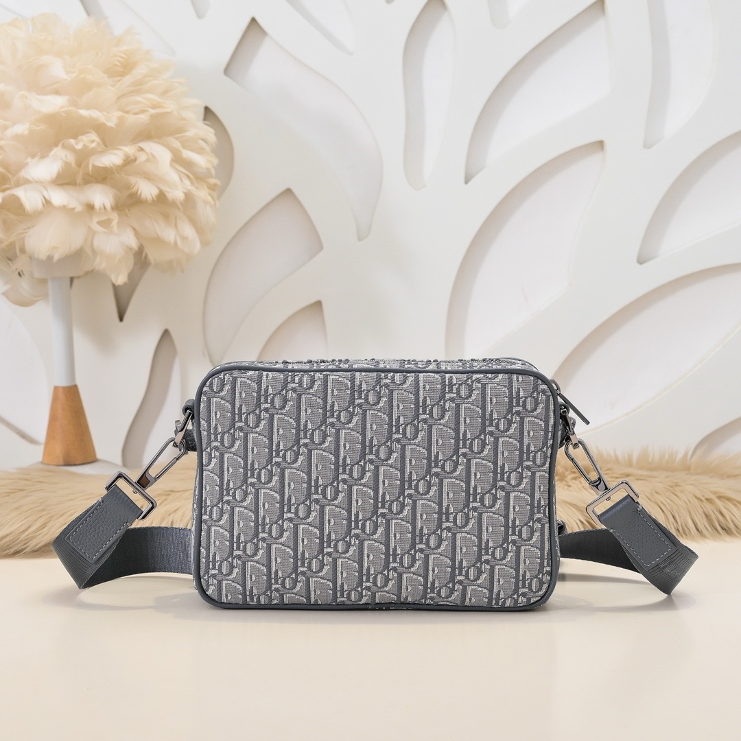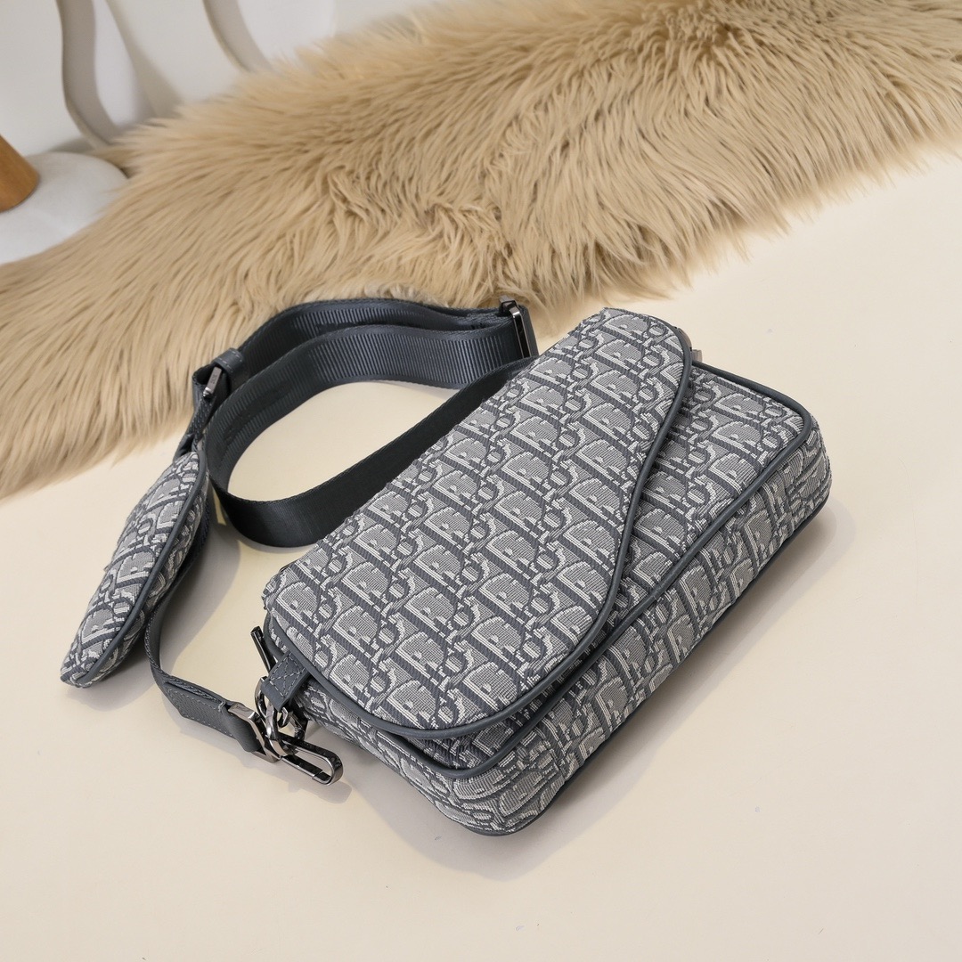 Dior-Saddle Bag-Men-Grey Oblique-Embroidery-3 Bags