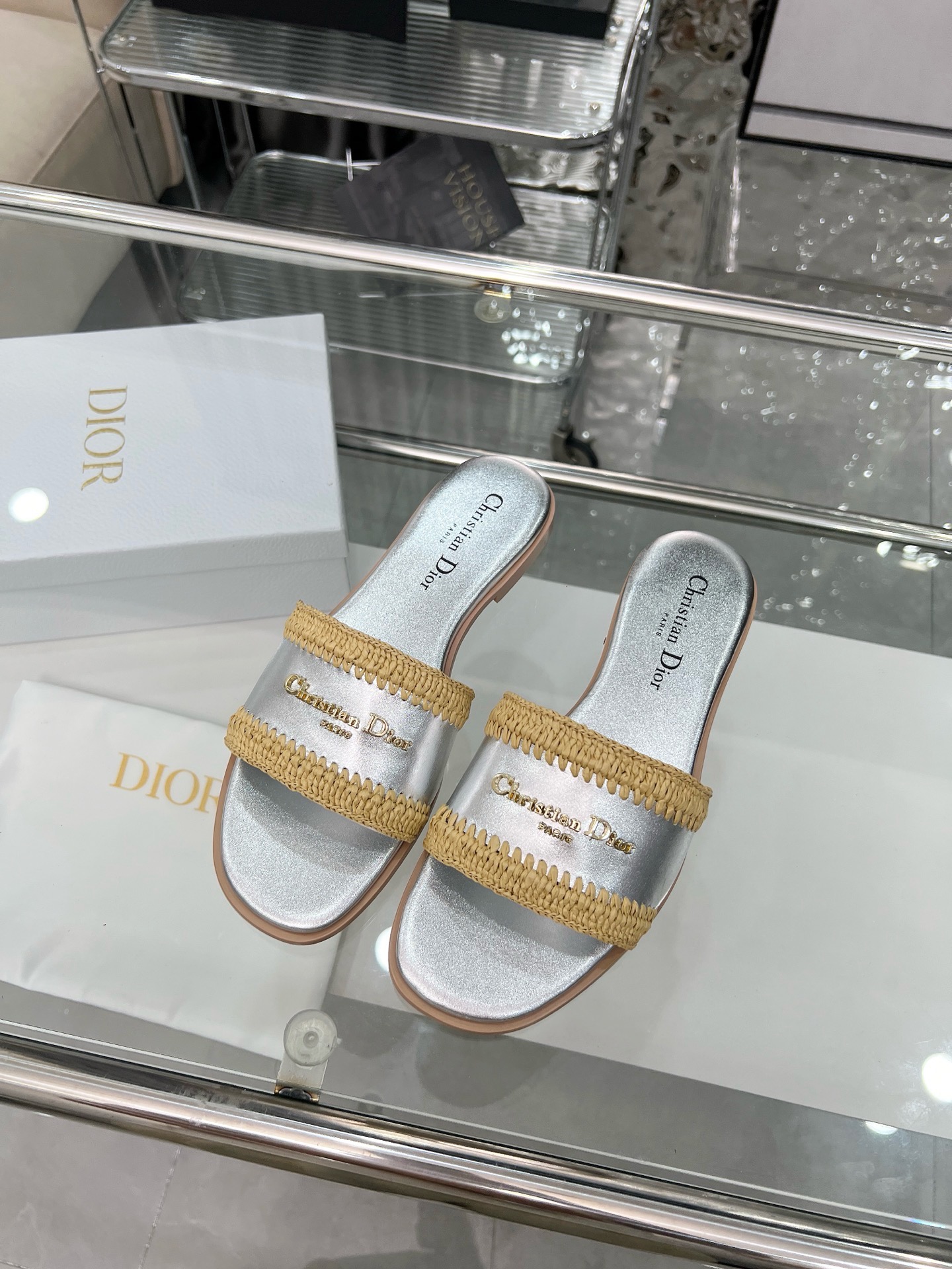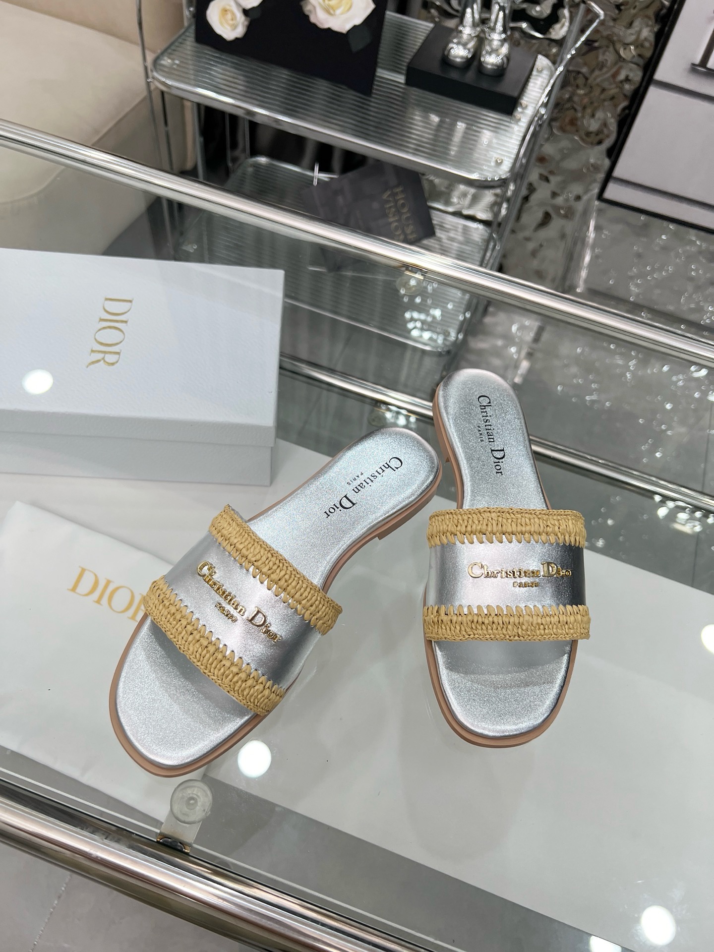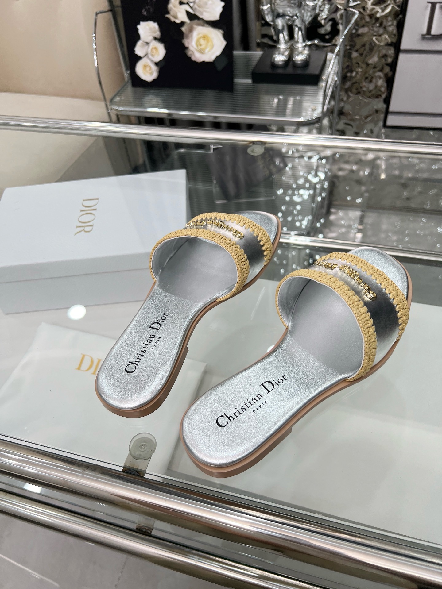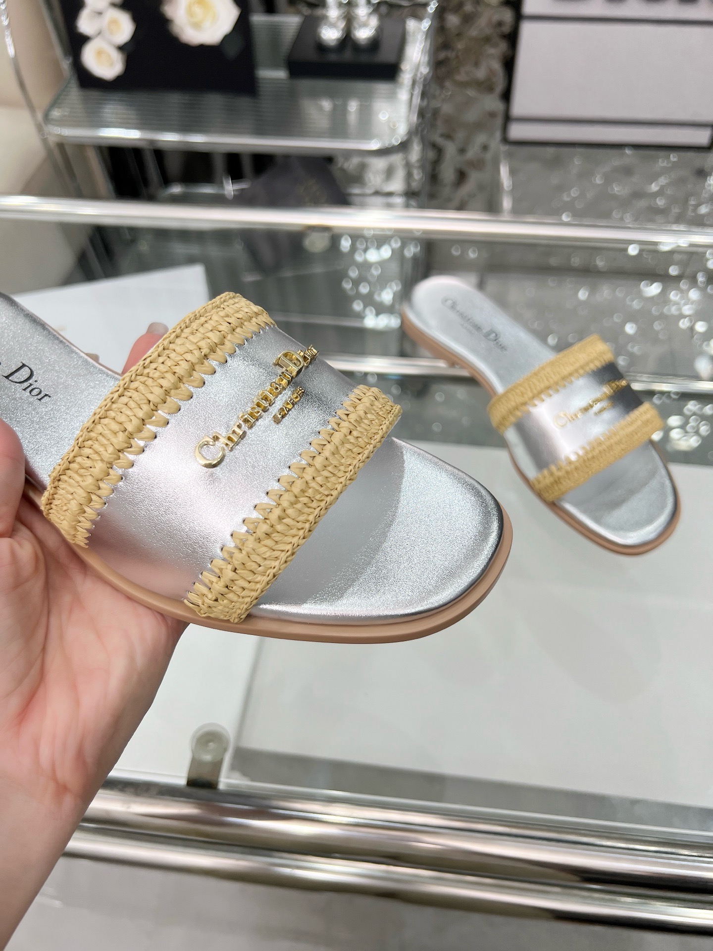Dior Woman Flip Flops Silver(35-43)