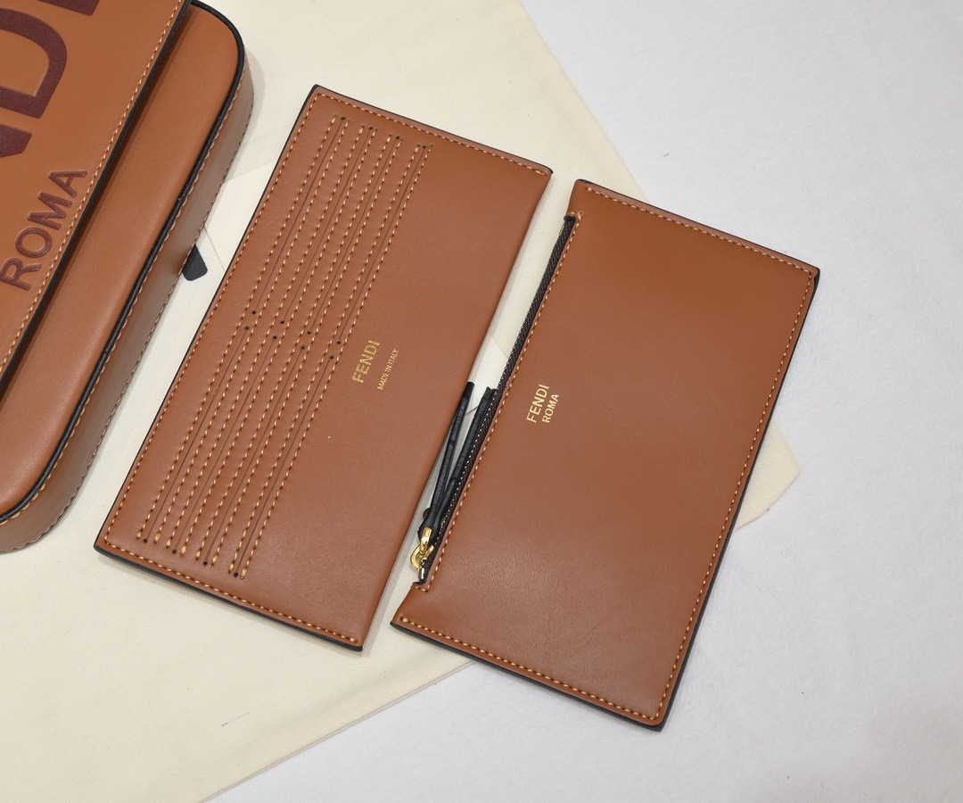 Fendi-HandBag/Chain bag-Lambskin Brown