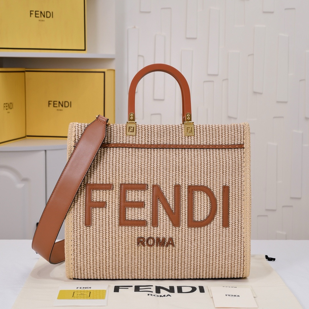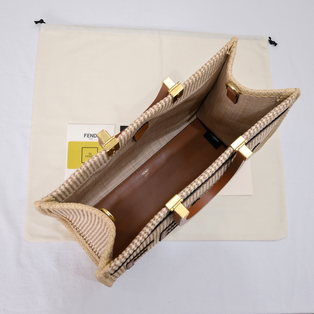 Fendi-Shine Tote-Straw Bag-Medium