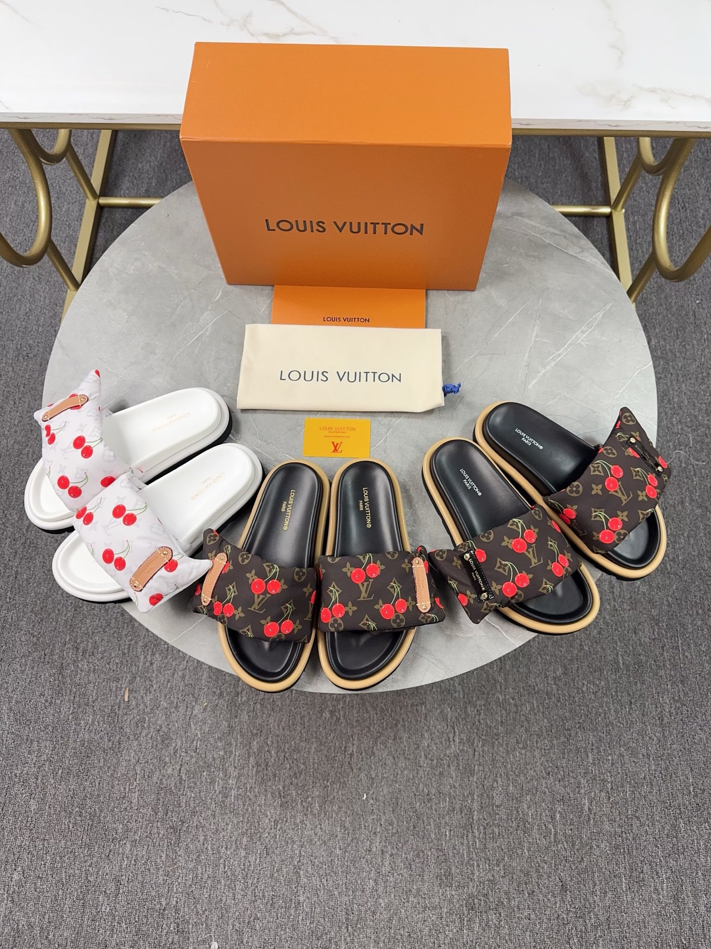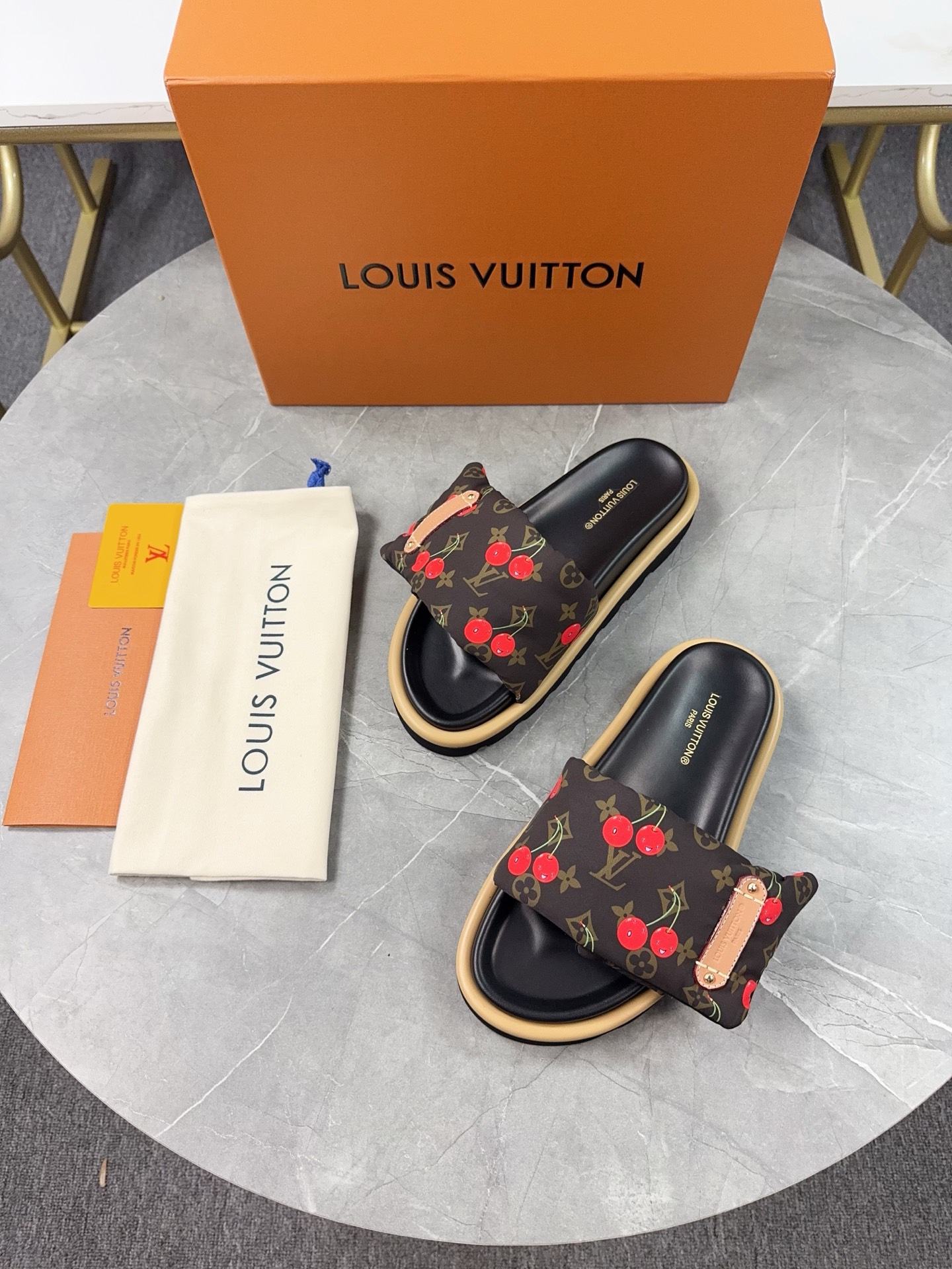 LV Unisex Flip Flops Cherry Brown