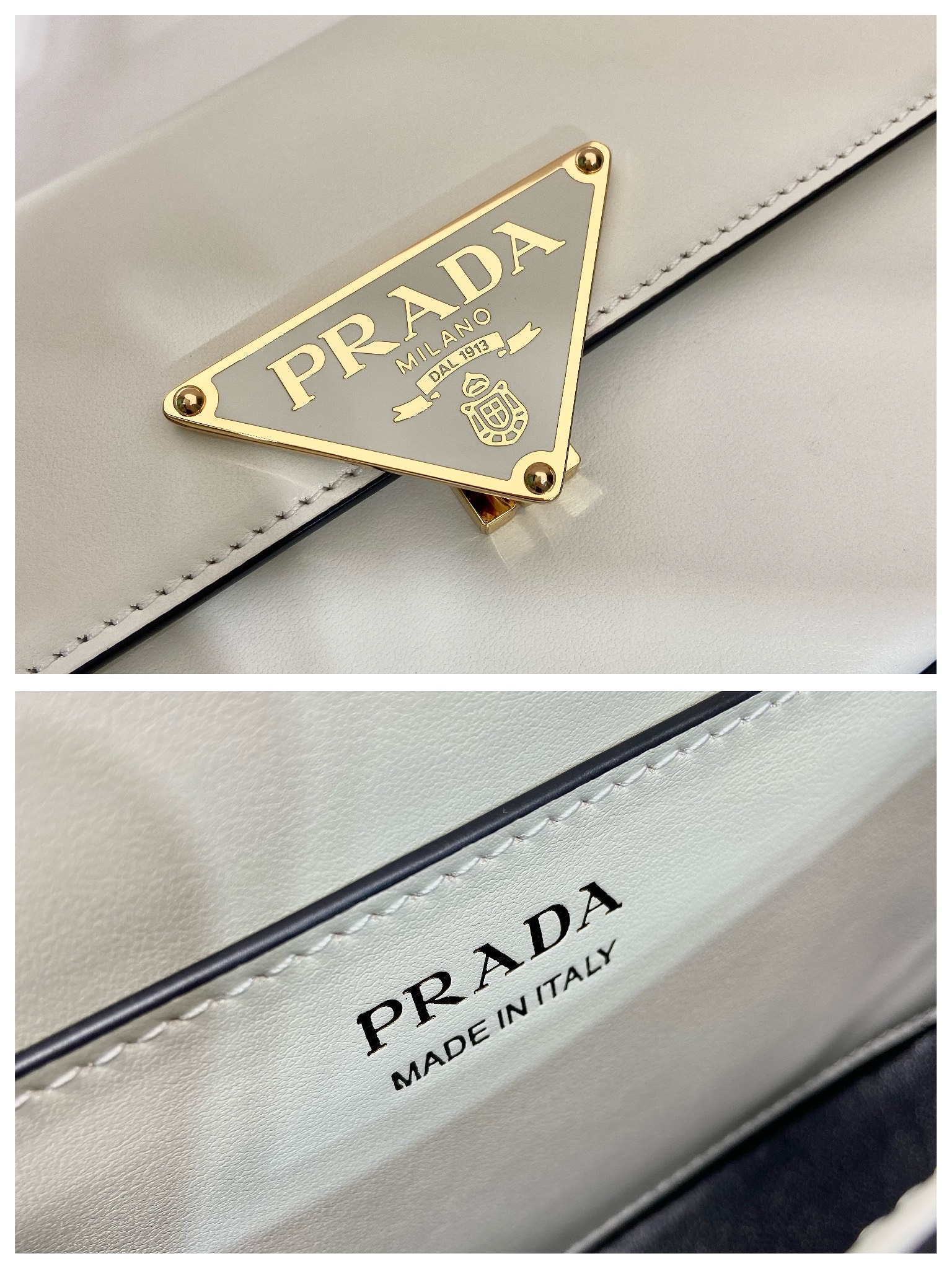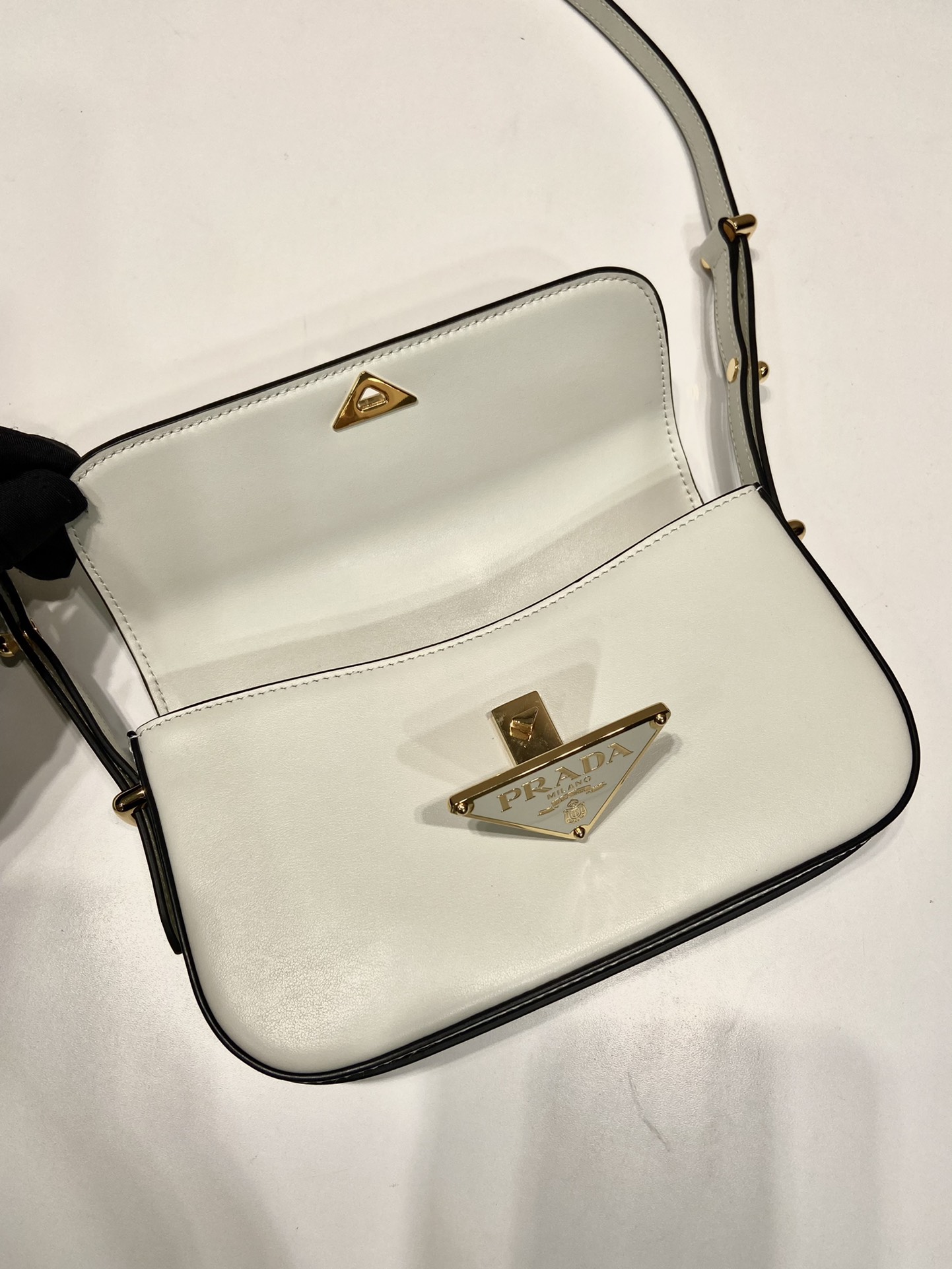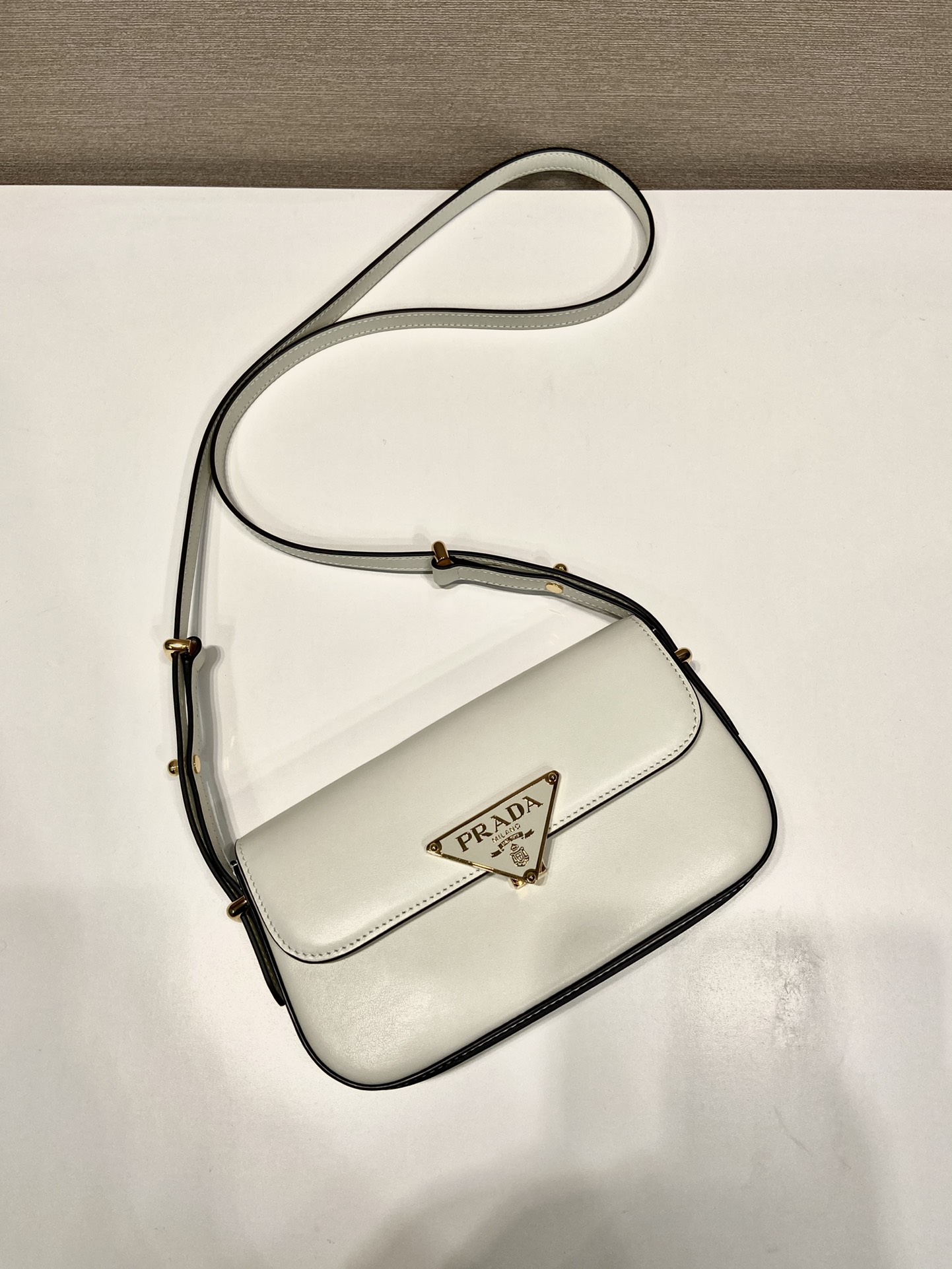 Prada-Cognac Leather shoulder bag-White-1BD339