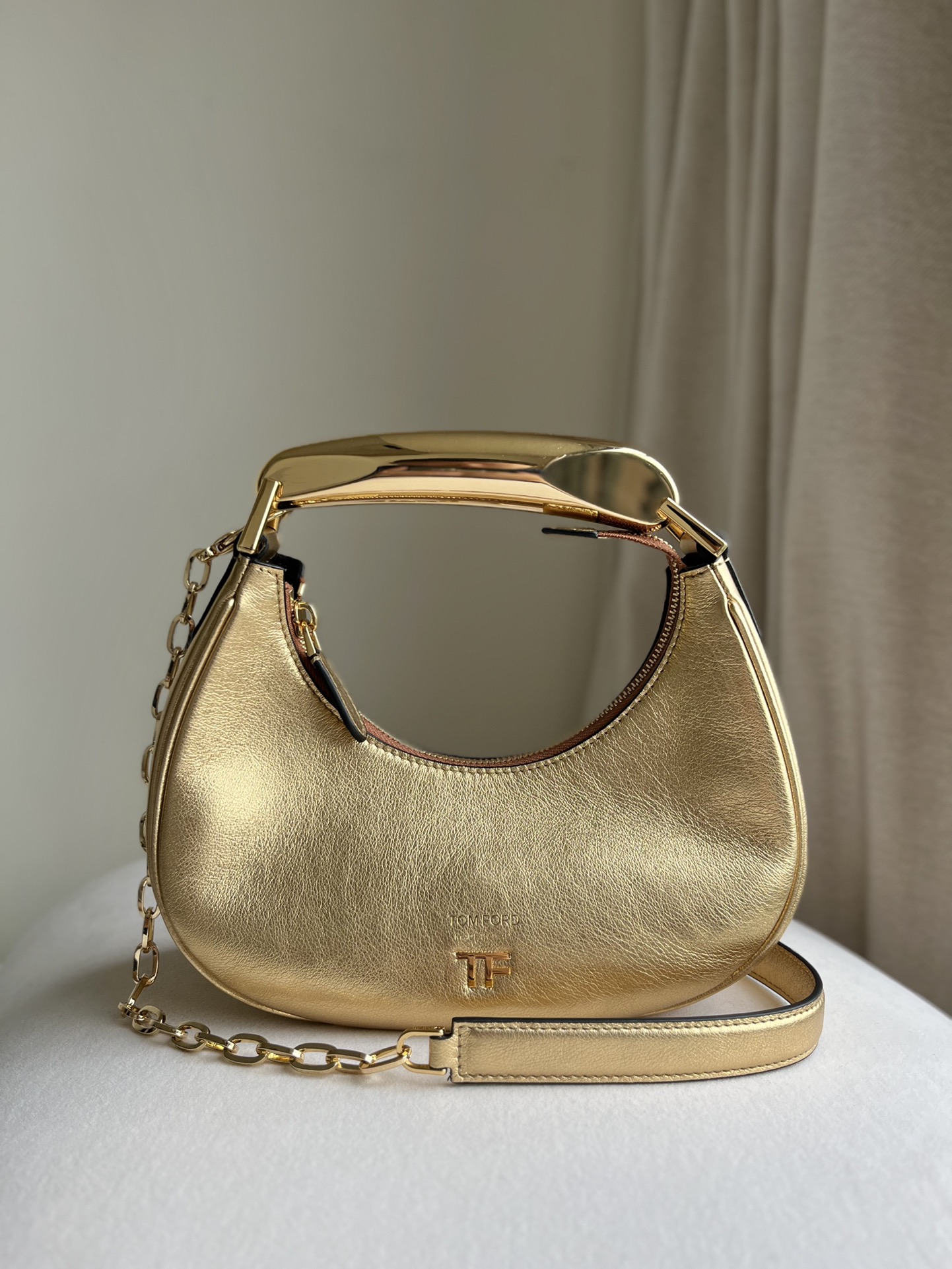 TomFord Bianca Hobo Bag-Leather-Gold